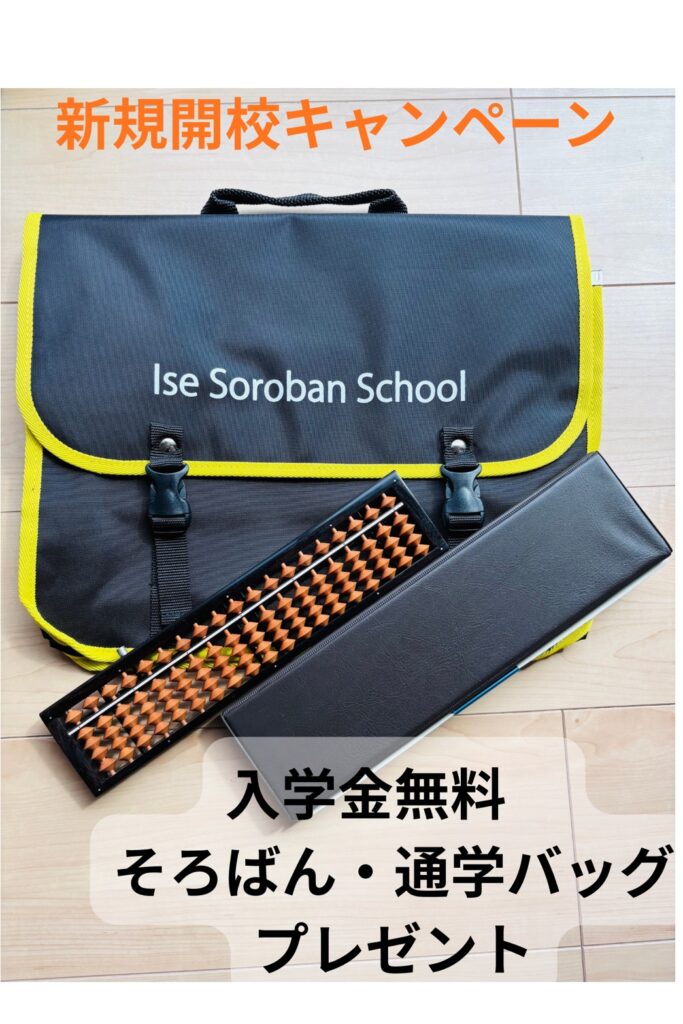 【お知らせ】新規開校キャンペーン お知らせ 2025.08.25 伊勢そろばんスクールです。令和7年10月新規開校に伴い、以下の通り「新規開校キャンペーン」を実施します。 ■開校3か月間(2025年12月末まで)入学金無料(通常10,000円)、そろばん、通学バッグプレゼント ■開校1年間(2026年9月末まで)は授業料はそのままで、①平日2日コースは週3回通えます②土曜日集中コースは最大5コマ選択できます。