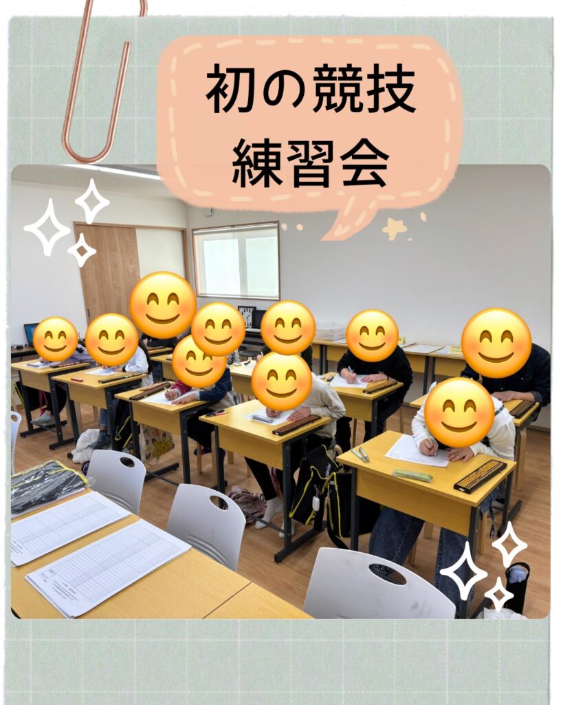 【練習会】競技練習会を開催しました。 練習会 2025.11.26 11月24日(月・祝)に、12月に行われる2つの通信大会に向けた競技練習会を行いました。大会問題の練習だけではなく、読上算・読上暗算、スピード競技(競争)、上手な選手な模範演技等、盛り沢山の内容でした。 みんな気合十分で、一生懸命に取り組んでくれて、充実した時間となりました。 これからも月に何度か競技練習会を行っていきますので、楽しみながら上達していきましょう。